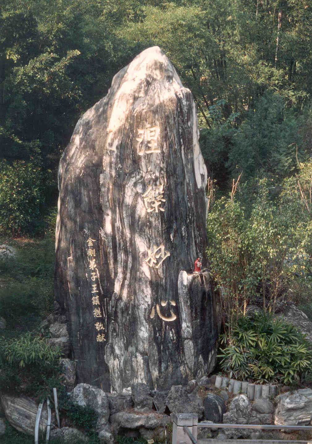 蓮花池有顆靈妙巨石,名為「摩尼石」,鐫刻「涅槃妙心」四字。此石來歷奇特,有一番不可思議的事蹟。