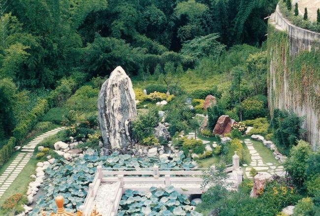 當年 仁波切來到噶瑪寺的所在地時,滿山荒野竹林。民國76年12月, 仁波切挖地引泉,舉行蓮花池動土典禮。77年1月30日, 仁波切指示弟子,花蓮木瓜溪的某處有一巨石,長寬如此,當運回作為鎮山之寶。