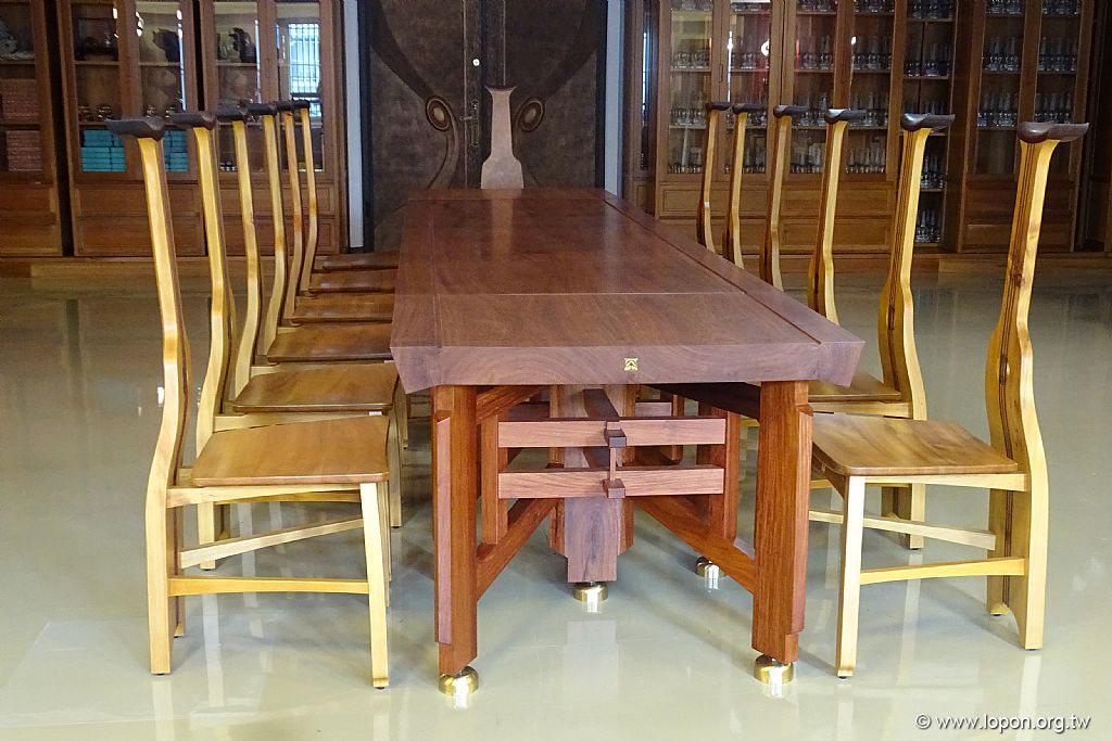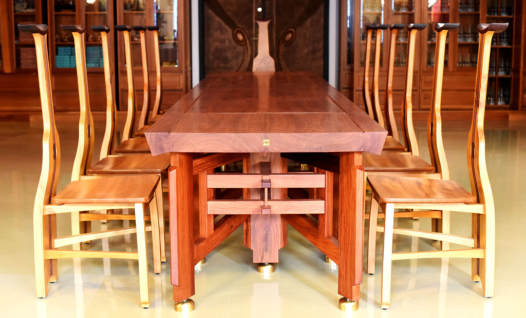 佛宴供桌的支撐骨架,以閂合榫卯結構,承托開展形象,綿長接天。桌面象徵虛空──以遍滿虛空之供養雲海,敬獻十方諸佛菩薩。桌面實木無拼接,表示諸佛一味。前後兩張小桌合併一大桌而成,象徵輪涅無二、前後無別。名為:成佛之桌。