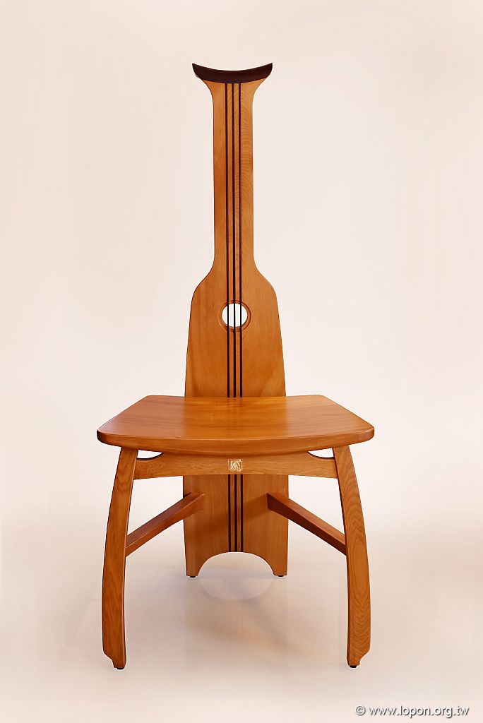 兩張佛椅、十二張菩薩椅,唯有佛椅具左右扶手,象徵圓滿空有雙運。菩薩椅,椅背都是一把琴幻化而成。佛陀往昔為悉達多太子之際,經常一人獨處樹下,乾闥婆樂神為其演奏天樂,今亦如是請佛聆賞妙音。同時,琴弦張弛有度,象徵中道。琴弦太緊,會繃斷。琴弦太鬆,沒聲音。鬆緊恰到好處,自有美妙雅樂。佛陀說:「修行就像彈琴,不能太緊、也不能太鬆,將心調適於中庸平和,道可得矣!」另,蘇東坡《琴詩》云:「若言琴上有琴聲,放在匣中何不鳴?若言聲在指頭上,何不於君指上聽?」詮釋琴聲之緣起性空,堪稱絕妙!如是,琴為椅背,教示我們如何安住、如何依止。