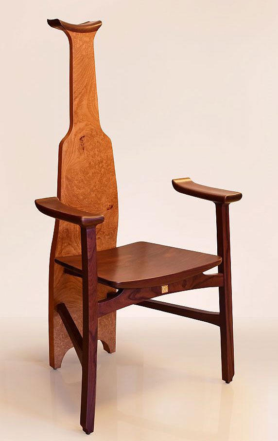 椅背最上方搭腦,象徵佛頂台。椅腳構成三角形,隱喻生法宮。