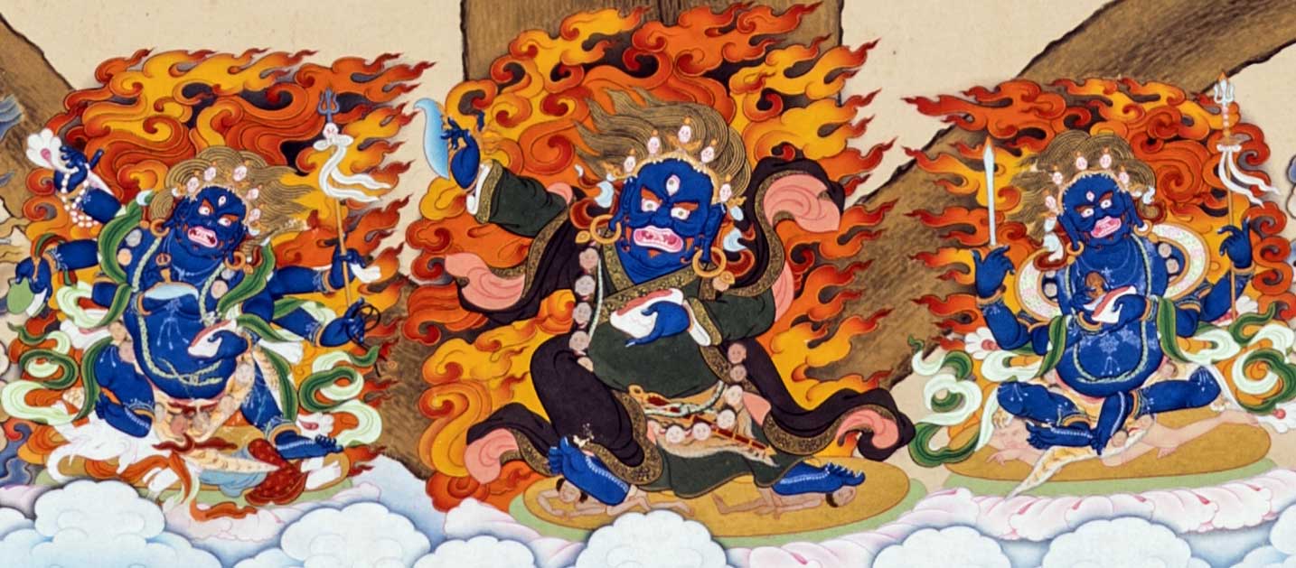藏傳佛教則將瑪哈噶拉視為三根本的化現。顯現忿怒相是為降服自身心魔,獲得無畏、無躇地為眾生之解脫與利益工作。與慈心、悲心無異之顯現。