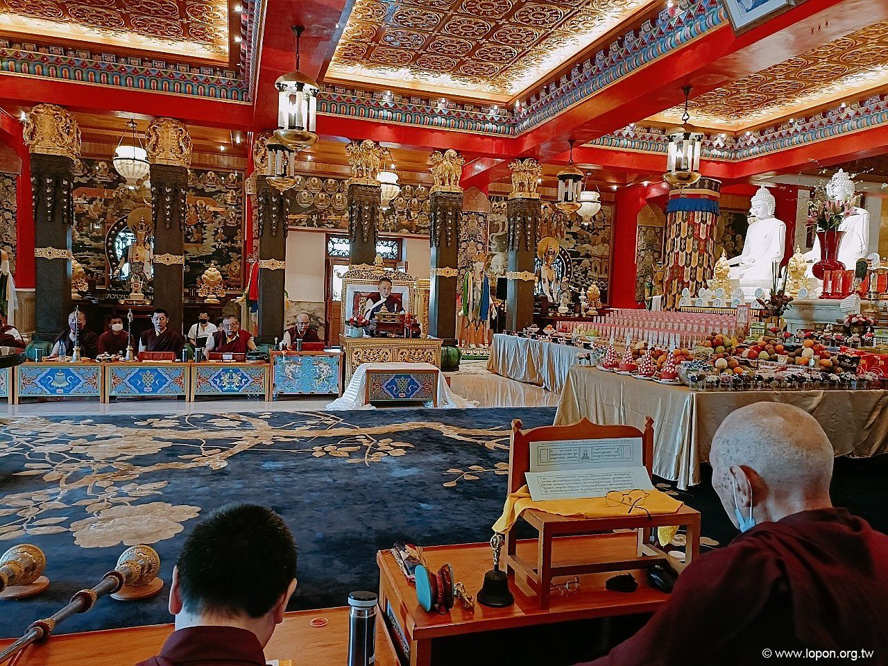 每一場法會都不同。以今天的阿彌陀佛法會來說,你們要觀想壇城中顯現阿彌陀佛三主尊,自己化為四臂白觀音,法會地點即是阿彌陀佛的淨土。