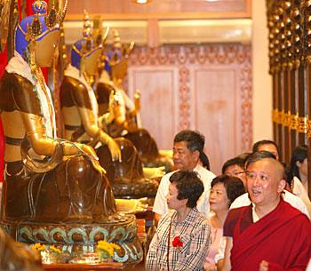 大悲的力量,直透那慈眉善目,令人仰望的霎時,止不住淚光閃爍如波光瀲灩!感動的頂禮,趨前領受加持,菩薩竟然如此貼近,如此真實。