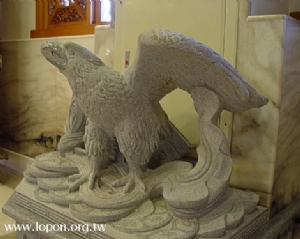 蓮師正上方有二十五大弟子環繞,在立體的山水祥雲間,彩塑弟子諸聖群像的風采儀範,紀念蓮師與門下高足對佛教的貢獻。 日光樓藻井安奉四座壇城,分別是:上師、本尊、空行、護法之壇城。壁面則有寧瑪岩傳祖師、寧瑪教傳祖師、欽智傳承等唐卡。此乃告訴世人,蓮師對大乘佛法的重要。 本山雖為白教的寺院,卻供奉紅教的蓮師與其弟子,理事圓融、不生分別。緬懷各傳承祖師為法忘軀,將法脈傳續至今,頓生無比的感動與感恩——開山精神亦在此! 禿鷹─帶領靈魂解脫的坐騎