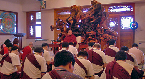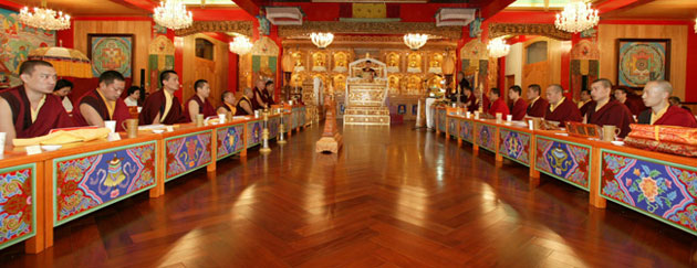 莊嚴崇高的法座,專屬於黑寶冠大寶法王噶瑪巴、紅寶冠法王夏瑪巴、以及開山上師。精雕細琢的龍紋、法輪、十字金剛杵、雪獅、牟尼寶……等典型的藏密圖騰,更添非凡尊貴之氣。